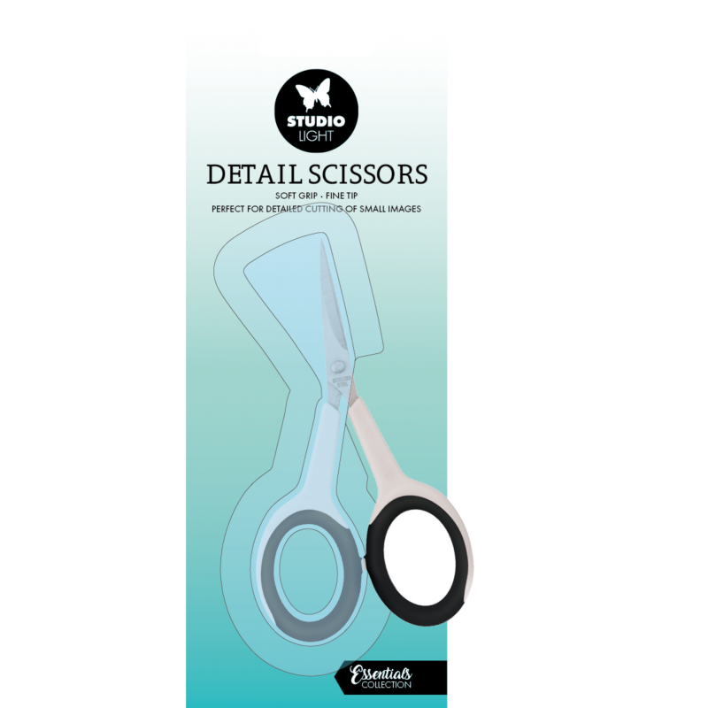 Precision scissors with fine stainless steel blades and a comfortable soft grip handle. Perfect for cutting small images, thin paper, light cardstock or fabrics. Compact, easy to handle, ideal for scrapbooking, mixed media, and creative craft projects.