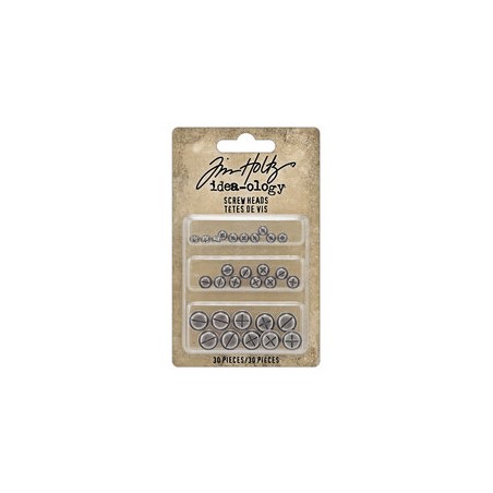 Contents & Sizes: 30 metal pieces — flat-backed faux screw heads. Three sizes included: approx. 3 mm, 5 mm and 10 mm diameter.