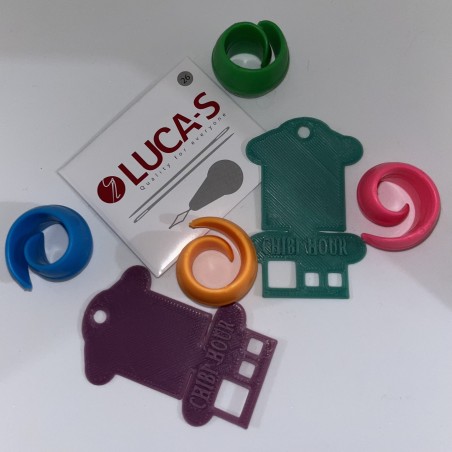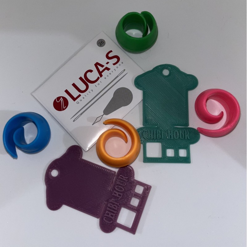 Un lot d’aiguilles accompagné d’un enfile-aiguille Luca-S, pour un enfilage simple et rapide