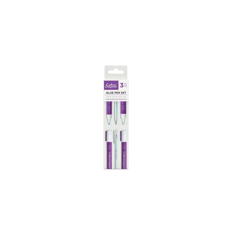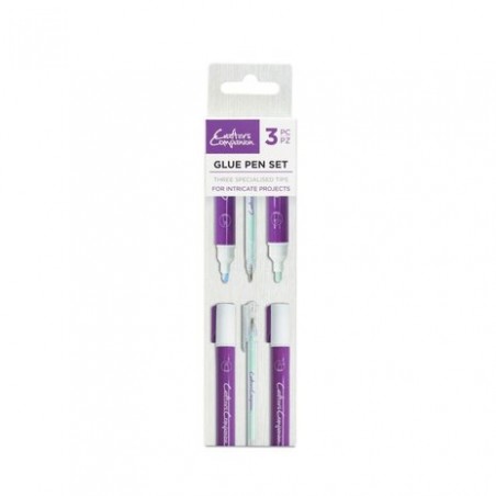 Cet ensemble comprend trois stylos‑colle de formes différentes (pointe bille, pointe « bullet » et pointe biseau) pour s’adapter à divers usages créatifs.