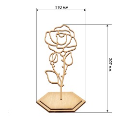 Silhouette en MDF de rose (20 cm) avec support en bois solide